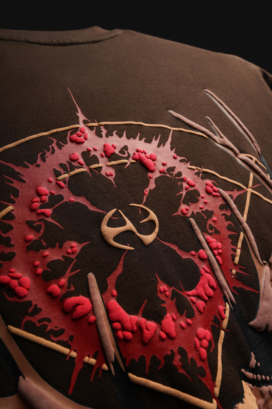 Design: Detailed nature-inspired screen and puff prints on both sides.